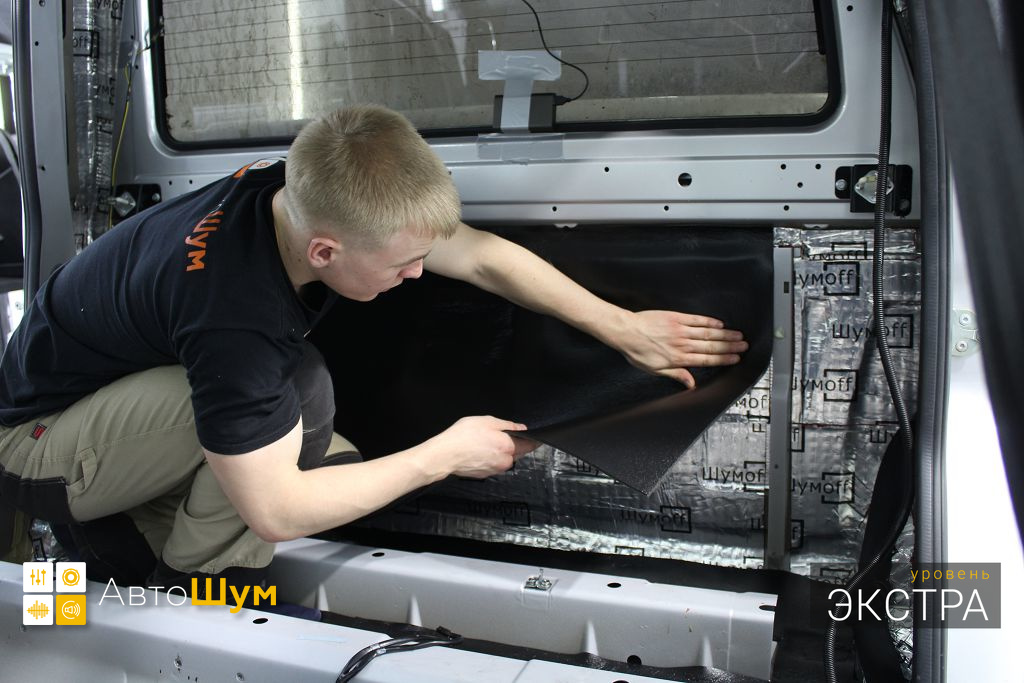 Внутренняя поверхность обивки оклеивается шумопоглотителем Шумофф Absorber А15.