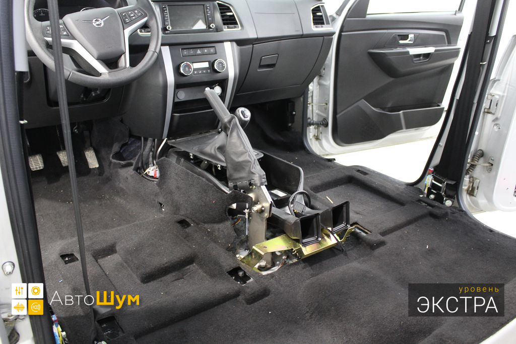 От моторной перегородки и до заднего сиденья вмести с ним клеится мощный многослойный шумо и звукоизолятор Шумофф Prizma 6.