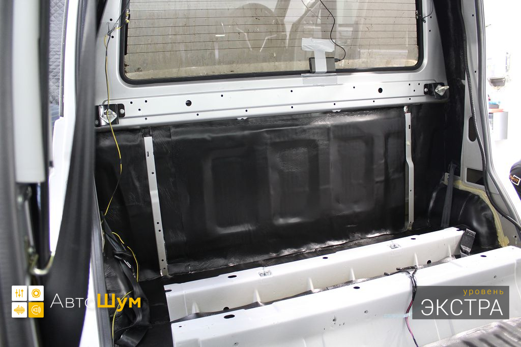 Внутренняя поверхность обивки оклеивается шумопоглотителем Flex А15.