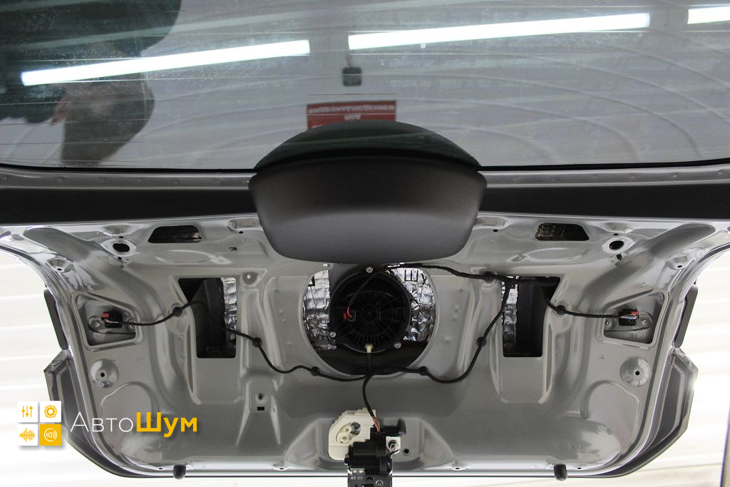 Крышку багажника оклеиваем виброизоляцией Шумофф L2, это позволит свести увеличение ее веса к минимуму, дабы не возникло проблем с открыванием багажника.