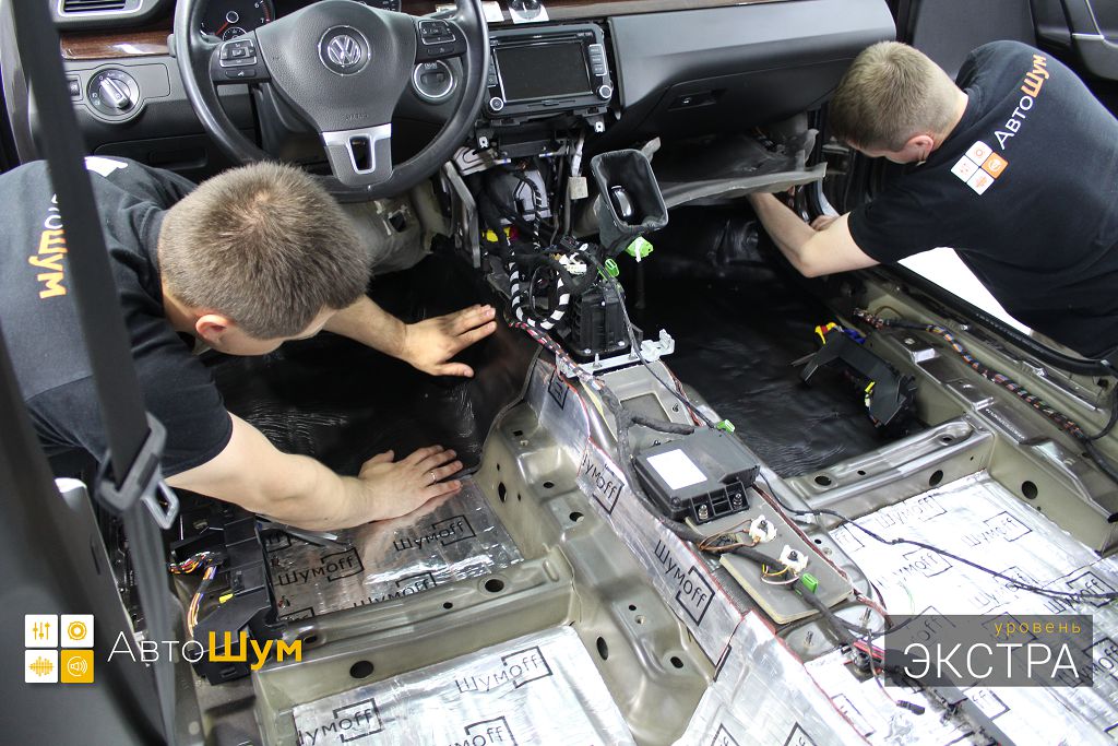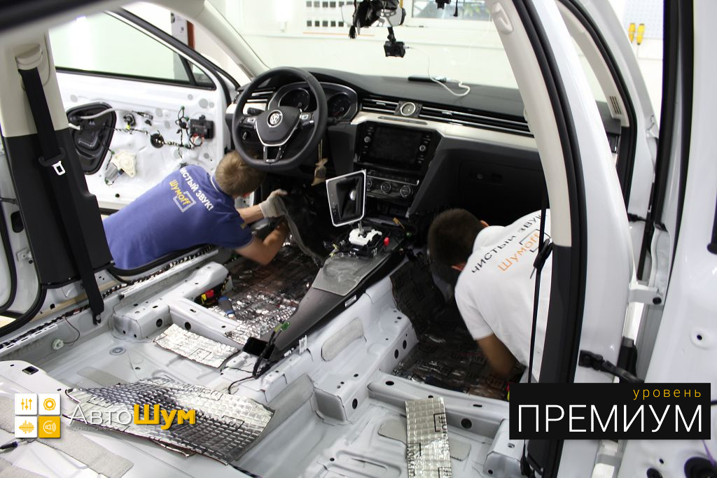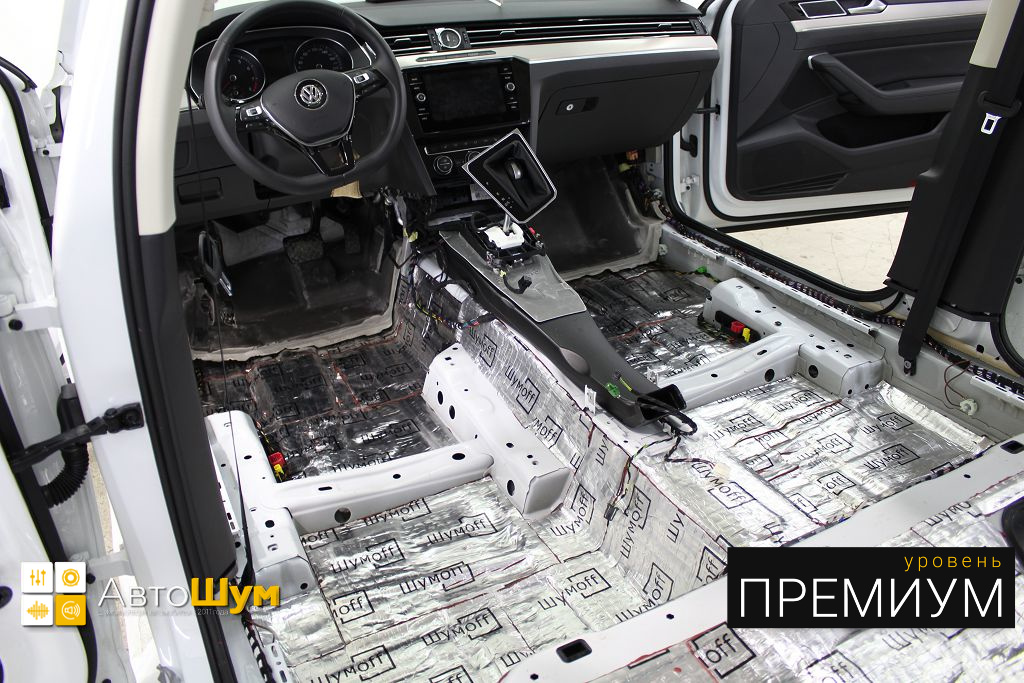 Фольксваген Пассат уже в заводском исполнении имеет более лучшую шумоизоляцию по сравнению с японскими и корейскими аналогами, однако это не исключает тот факт что в нем все же слышно шум колес и дорожного покрытия, а так же теплоизоляция салона совсем не отличается выдающимися характеристиками. Исправить эти недочеты, а так же улучшить качество звучания акустики можно если сделать шумоизоляцию салона Volkswagen Paasat B8.