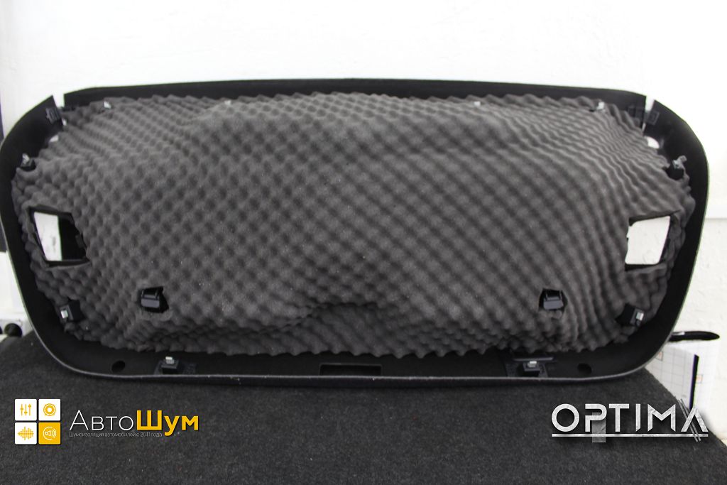 Для виброизоляции крыши багажника используем материал Шумофф L2, чтобы свести увеличение веса к минимуму. После чего переходим к обшивке.